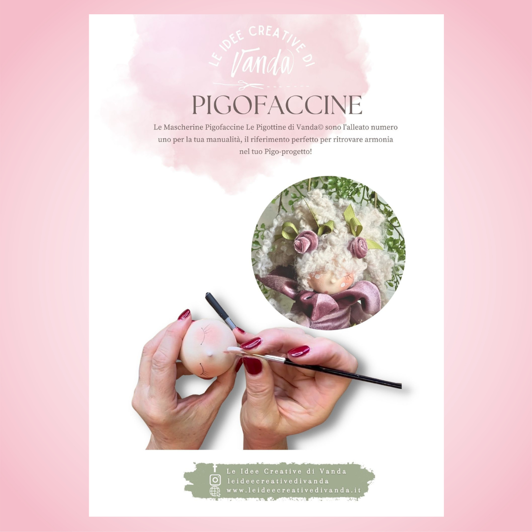 Pigofaccine è un cartamodello pensato per aiutarti a creare con facilità le faccine delle Pigottine, le bambole protagoniste dei miei manuali e dei progetti gratuiti disponibili sul canale YouTube Le Pigottine di Vanda.